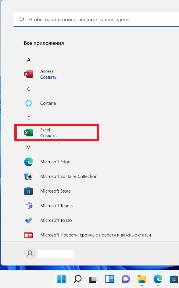 Если у Вас Windows 11, заходим в меню «Пуск» → Все приложения → Ищем там также, допустим Excel и запускаем его.